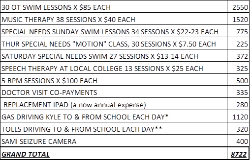 But back on point… So we spent $8722 in what you could call Special Needs related expenses…