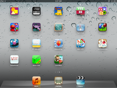 All of this to say that we were not buying the IPad and expecting miracles. We were not expecting Kyle to become Carly Fleischmann. We were not going to go out and spend $$ on a $100+ speech app like Proloquo2Go yet… We got the IPad in April and just wanted Kyle to think of it as a fun activity, to understand and grasp the touch screen functionality, and to NOT THINK OF IT AS WORK.