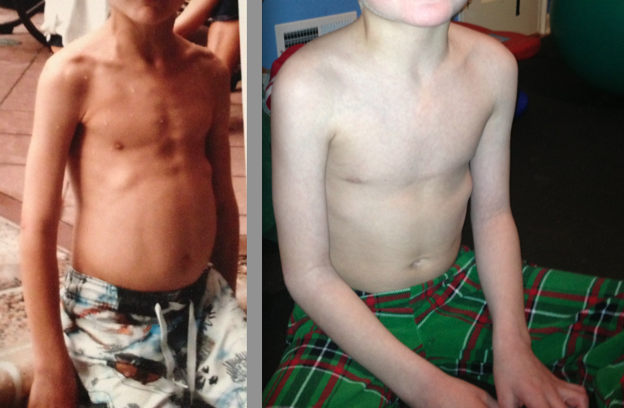 As y’all know, Kyle holds his breath and protrudes his belly… which makes him look “fat” in the before pic…but look how BONY he was… and look how healthy he looks now!