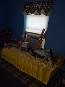 The party means a lot to my wife. It definitely means more to her than it does to Kyle. She LOVES throwing parties and she is good at it and takes pride in it. All month she’s been making lists and slowly stocking up on supplies and making the arrangements and planning out the goodie bags. And all week this week she had our home office set up as a staging area with goodie bags and chips and cups all lined up and ready to go.